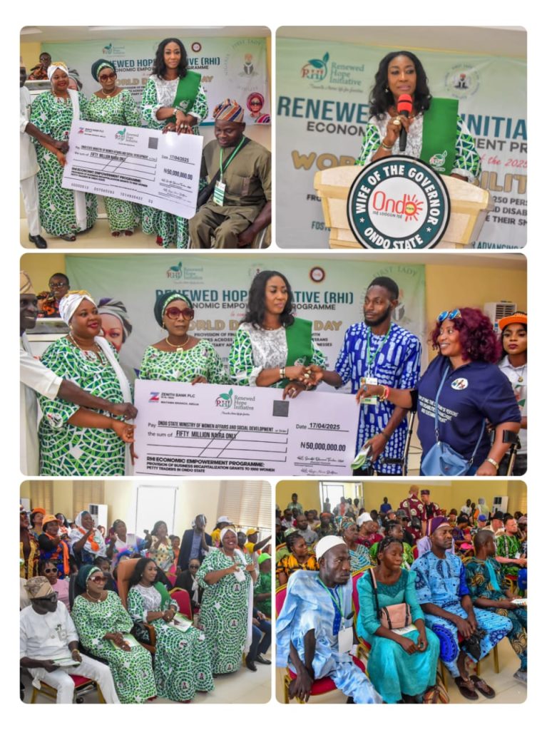 IDPWD: FIRST LADY OF NIGERIA EMPOWERS 250 PHYSICALLY CHALLENGED PERSONS IN ONDO GOV AIYEDATIWA CALLS FOR SERVICE-DRIVEN GOVERNANCE AND INTEGRITY IN PUBLIC OFFICE,SWEARS IN SPECIAL ADVISERS,DG PPIMU