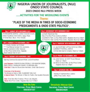 *Ondo NUJ 2023 Press Week Celebration Begins Tomorrow* .... Akeredolu, Aiyedatiwa,Tunji-Ojo, , Olawande, other dignitaries Expected. ***NUJ to honour Ondo...