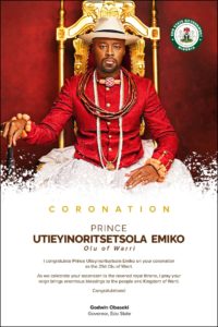 The Edo State Governor, Mr. Godwin Obaseki, has congratulated Prince Utieyinoritsetsola Emiko on his coronation as the 21st Olu of...