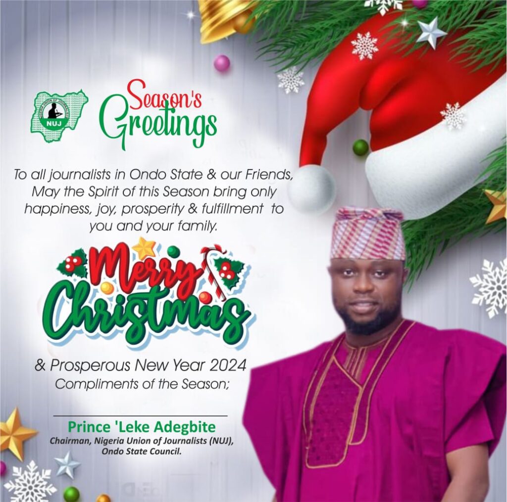 The Nigeria Union of Journalists, NUJ, Ondo State Council, felicitates Christians and media professionals across the state, as they celebrate Christmas to mark the birth of the saviour, Jesus Christ.
